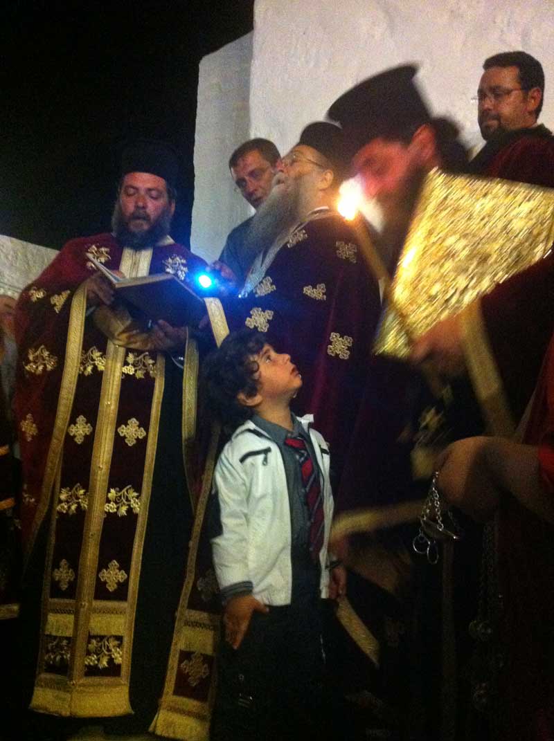 We docked early and headed up the hill to Chora. A couple of Turks and a Greek. Good Friday in Patmos was a revelation. To this Greek. And to his Turkish friends. Greek or Turkish, Christian or Muslim … anyone would be touched by the simple beauty and spiritual complexity of what we witnessed in the little square in the shadow of the monastery. And the image of the little boy tugging at the gilded sleeve of his bearded, singing priest father resplendent in the trappings of the Greek Orthodox Church will remain etched in my mind forever.